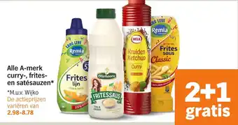 Alle A-merk curry, frites en satésauzen 2+1 gratis
