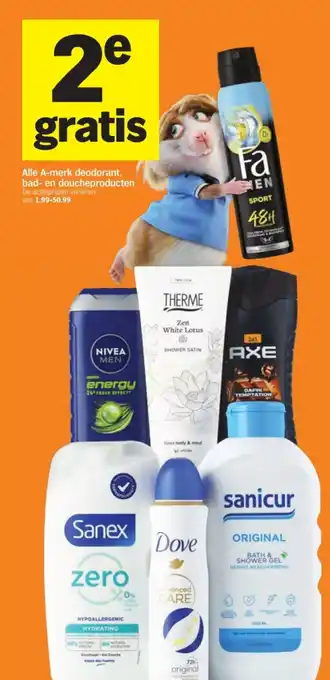 Alle A-merk deodorant, bad- en doucheproducten 2e gratis