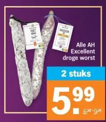 Alle AH Excellent droge worst 2 stuks 638-938