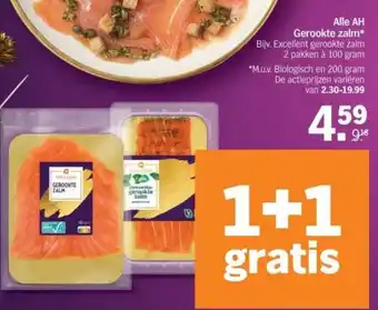 Alle AH Gerookte zalm 200 g 1+1 gratis