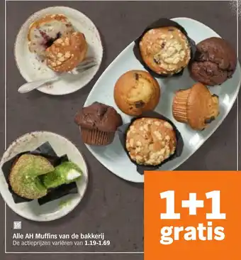 Alle AH Muffins van de bakkerij 1+1 gratis