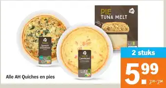 Alle AH Quiches en pies: Spinazie Geitenkaas, Lorraine, Tuna Melt - 2 stuks voor 5.99