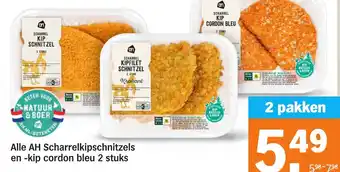 Alle AH Scharrelkipschnitzels en kip cordon bleu