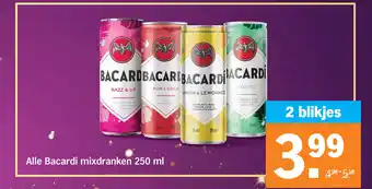 Bekijk de meest recente aanbiedingen en blijf op de hoogte van welke winkels Alle Bacardi mixdranken op korte termijn met korting aanbieden. Niemand betaalt graag te veel – daarom houden wij de prijzen scherp in de gaten. Pas je (boodschappen)lijst aan op basis van acties van deze week én verwachte deals. Sommige aanbiedingen gelden alleen in de winkel, dus check regelmatig waar Alle Bacardi mixdranken het voordeligst verkrijgbaar is.Veelgestelde vragen over Alle Bacardi mixdranken