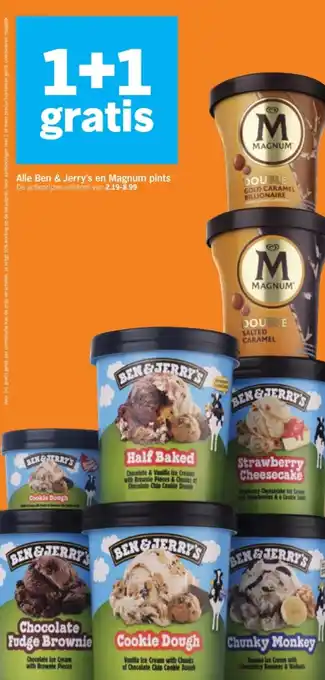 Alle Ben & Jerry's en Magnum pints 1+1 gratis