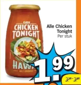 Albert Heijn biedt naast de Alle Chicken Tonight een ruime collectie producten aan. Houd de wekelijkse Albert Heijn folder in de gaten om de beste aanbiedingen en acties te vinden. Naast Alle Chicken Tonight, kunt u ook de volgende aanbiedingen vinden: Chicken Tonight Roerbaksaus, Philosophy - Kiss Me Tonight Kiss Me Tonight & Flying chicken.