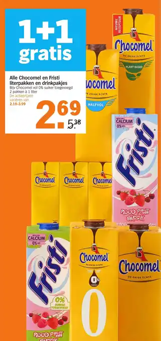 Alle Chocomel en Fristi literpakken en drinkpakjes 1+1 gratis