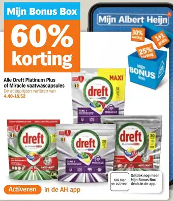 Alle Dreft Platinum Plus of Miracle vaatwascapsules aanbieding bij Albert Heijn