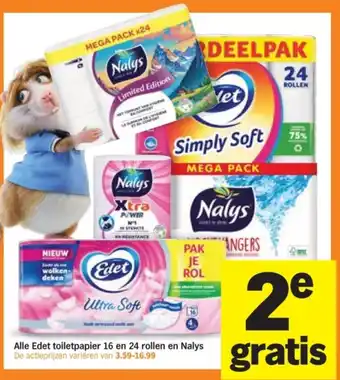 Alle Edet toiletpapier 16 en 24 rollen en Nalys 2e gratis