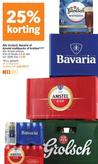 Alle Grolsch, Bavaria of Amstel multipacks of kratten 0.33 liter