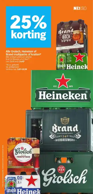 Alle Grolsch, Heineken of Brand multipacks of kratten