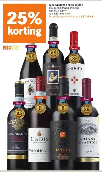Alle Italiaanse rode wijnen korting bij Albert Heijn