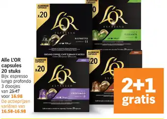 Alle L'OR capsules 20 stuks 2+1 gratis