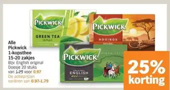 Alle Pickwick 1-kopsthee 15-20 zakjes aanbieding en online acties bij Albert Heijn