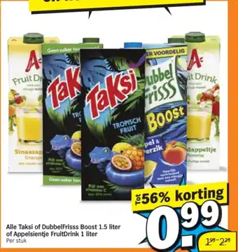 Alle Taksi of Dubbel Frisss Boost of Appelsientje FruitDrink aanbieding en online acties bij Albert Heijn