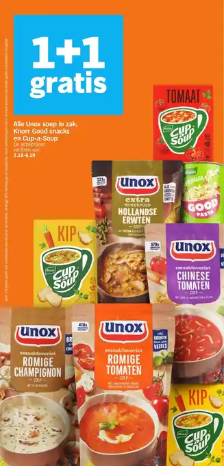 Alle Unox soep in zak, Knorr Good snacks en Cup-a-Soup 1+1 gratis