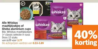 Alle Whiskas maaltijdzakjes of Sheba aluminium cups