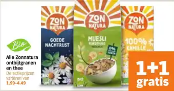 Alle Zonnatura ontbijtgranen en thee 1+1 gratis