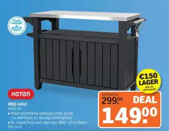Albert Heijn biedt naast de BBQ tafel Unity XL een ruime collectie producten aan. Houd de wekelijkse Albert Heijn folder in de gaten om de beste aanbiedingen en acties te vinden. Naast BBQ tafel Unity XL, kunt u ook de volgende aanbiedingen vinden: keter BBQ-tafel Unity XL, BBQ-tafel & BBQ Tafel.
