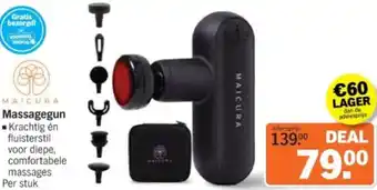 De MAICURA Massagegun is een krachtig en fluisterstil massageapparaat dat zorgt voor diepe en comfortabele massages. Met een adviesprijs van €60 is deze massagegun nu verkrijgbaar voor een lagere prijs van slechts €39. Gratis bezorgd! De MAICURA Massagegun is ideaal voor het verlichten van spierspanning, het verbeteren van de bloedsomloop en het versnellen van spierherstel na een intensieve training. Met verschillende intensiteitsniveaus en massagekoppen kan je de massage aanpassen aan jouw behoeften. Profiteer nu van deze geweldige deal en ervaar de voordelen van een professionele massage in het comfort van je eigen huis. Bestel de MAICURA Massagegun vandaag nog en geniet van een ontspannen en verfrissende massage-ervaring.