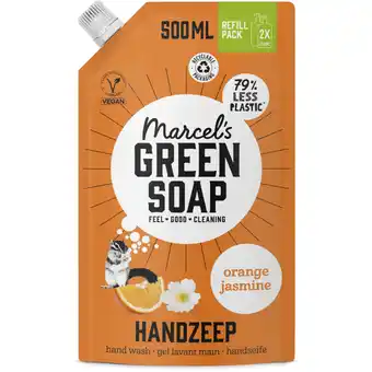 Marcel's Green Soap Handzeep orange & jasmin navulling aanbieding en online acties bij Albert Heijn