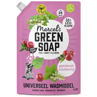 Marcel's Green Soap Wasmiddel patchouli cranberry navulling korting bij Albert Heijn