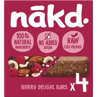 De prijs van de Nakd. Berry delight bars kan ook teruggevonden worden hierboven op de pagina, samen met de datum van wanneer de aanbieding beschikbaar is. Ook kun je de prijzen in de huidige Albert Heijn folder of op de Albert Heijn website controleren. De aanbiedingen verzekeren je van het kopen van de Albert Heijn producten voor de laagste prijs.