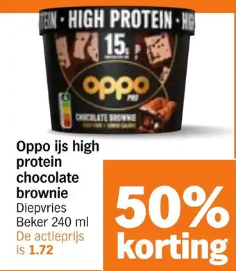 Oppo ijs high protein chocolate brownie aanbieding bij Albert Heijn