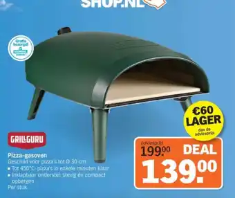 De Pizza-gasoven van GRILLGURU is de ideale oplossing voor liefhebbers van verse pizza's. Met een maximale temperatuur van 450°C zijn je pizza's in slechts enkele minuten klaar. Het inklapbare onderstel zorgt voor een stevige en compacte opberging. Geschikt voor pizza's tot 30 cm groot. Bestel deze handige pizza-gasoven nu op SHOP.NL voor slechts €139.00 per stuk, €60 lager dan de adviesprijs van €199.00. Profiteer van deze deal en geniet binnenkort van heerlijke zelfgemaakte pizza's, gratis bezorgd bij jou thuis. Maak van elke avond een pizzaparty met de Pizza-gasoven van GRILLGURU!