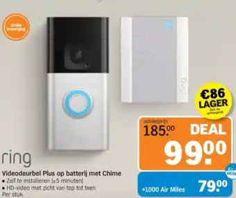 De prijs van de Ring Videodeurbel Plus op batterij met Chime kan ook teruggevonden worden hierboven op de pagina, samen met de datum van wanneer de aanbieding beschikbaar is. Ook kun je de prijzen in de huidige Albert Heijn folder of op de Albert Heijn website controleren. De aanbiedingen verzekeren je van het kopen van de Albert Heijn producten voor de laagste prijs.