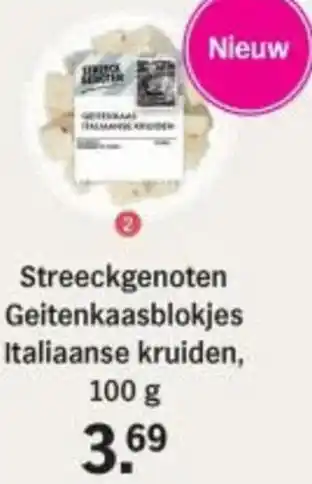 Koop Streeckgenoten Geitenkaasblokjes Italiaanse kruiden komende week met korting