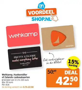 Wehkamp, Hunkemöller of Zalando cadeaukaarten aanbieding bij Albert Heijn
