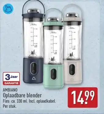 De prijs van de Ambiano Oplaadbare blender kan ook teruggevonden worden hierboven op de pagina, samen met de datum van wanneer de aanbieding beschikbaar is. Ook kun je de prijzen in de huidige ALDI folder of op de ALDI website controleren. De aanbiedingen verzekeren je van het kopen van de ALDI producten voor de laagste prijs.