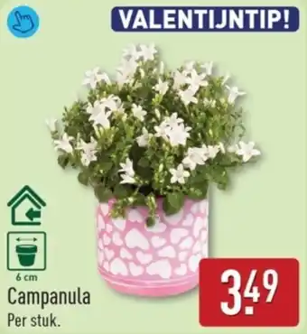 De prijs van de Campanula kan ook teruggevonden worden hierboven op de pagina, samen met de datum van wanneer de aanbieding beschikbaar is. Ook kun je de prijzen in de huidige ALDI folder of op de ALDI website controleren. De aanbiedingen verzekeren je van het kopen van de ALDI producten voor de laagste prijs.