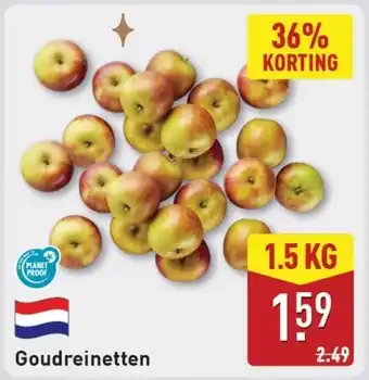 De prijs van de Goudreinetten kan ook teruggevonden worden hierboven op de pagina, samen met de datum van wanneer de aanbieding beschikbaar is. Ook kun je de prijzen in de huidige ALDI folder of op de ALDI website controleren. De aanbiedingen verzekeren je van het kopen van de ALDI producten voor de laagste prijs.