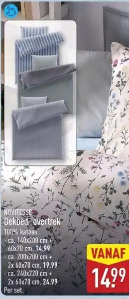 Neem een kijkje voor de goedkoopste producten tussen alle aanbiedingen! Als je wilt weten of ALDI de hoogste korting voor Novitesse Dekbedovertrek heeft, vergelijk het op de Topic page of met andere winkels.