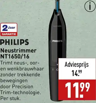 De prijs van de PHILIPS Neustrimmer NT1650/16 kan ook teruggevonden worden hierboven op de pagina, samen met de datum van wanneer de aanbieding beschikbaar is. Ook kun je de prijzen in de huidige ALDI folder of op de ALDI website controleren. De aanbiedingen verzekeren je van het kopen van de ALDI producten voor de laagste prijs.