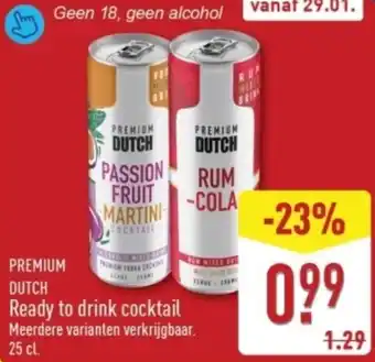 De prijs van de Premium Dutch Ready to drink cocktail kan ook teruggevonden worden hierboven op de pagina, samen met de datum van wanneer de aanbieding beschikbaar is. Ook kun je de prijzen in de huidige ALDI folder of op de ALDI website controleren. De aanbiedingen verzekeren je van het kopen van de ALDI producten voor de laagste prijs.