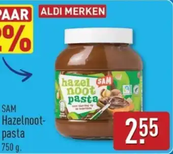 Bespaar 62% op Sam hazelnootpasta bij Aldi