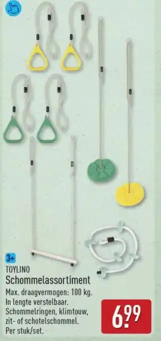 De prijs van de Toylino Schommelassortiment kan ook teruggevonden worden hierboven op de pagina, samen met de datum van wanneer de aanbieding beschikbaar is. Ook kun je de prijzen in de huidige ALDI folder of op de ALDI website controleren. De aanbiedingen verzekeren je van het kopen van de ALDI producten voor de laagste prijs.