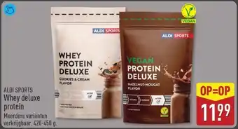 ALDI biedt naast de Whey deluxe protein een ruime collectie producten aan. Houd de wekelijkse ALDI folder in de gaten om de beste aanbiedingen en acties te vinden. Naast Whey deluxe protein, kunt u ook de volgende aanbiedingen vinden: Whey Protein Banana, 100% Natural Whey Protein Cacao & Royal green organic whey proteïn 600gr.