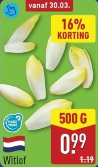 De prijs van de Witlof kan ook teruggevonden worden hierboven op de pagina, samen met de datum van wanneer de aanbieding beschikbaar is. Ook kun je de prijzen in de huidige ALDI folder of op de ALDI website controleren. De aanbiedingen verzekeren je van het kopen van de ALDI producten voor de laagste prijs.