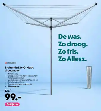Nu in de aanbieding bij AllesZ: Brabantia Lift-O-Matic droogmolen✅ Actie geldig van 2-03 t/m 22-03.