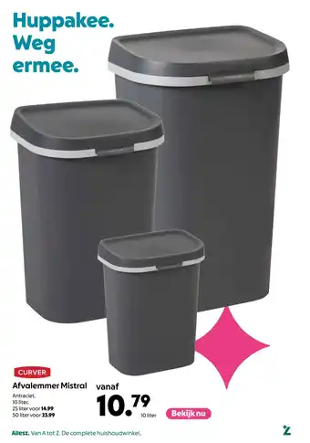 De prijs van de CURVER. Afvalemmer Mistral kan ook teruggevonden worden hierboven op de pagina, samen met de datum van wanneer de aanbieding beschikbaar is. Ook kun je de prijzen in de huidige AllesZ folder of op de AllesZ website controleren. De aanbiedingen verzekeren je van het kopen van de AllesZ producten voor de laagste prijs.