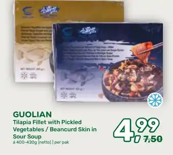 De prijs van de Guolian Tilapia Fillet with Pickled Vegetables / Beancurd Skin in Sour Soup kan ook teruggevonden worden hierboven op de pagina, samen met de datum van wanneer de aanbieding beschikbaar is. Ook kun je de prijzen in de huidige Amazing Oriëntal folder of op de Amazing Oriëntal website controleren. De aanbiedingen verzekeren je van het kopen van de Amazing Oriëntal producten voor de laagste prijs.