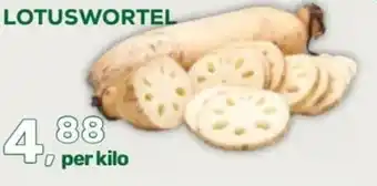 De prijs van de Lotuswortel kan ook teruggevonden worden hierboven op de pagina, samen met de datum van wanneer de aanbieding beschikbaar is. Ook kun je de prijzen in de huidige Amazing Oriëntal folder of op de Amazing Oriëntal website controleren. De aanbiedingen verzekeren je van het kopen van de Amazing Oriëntal producten voor de laagste prijs.