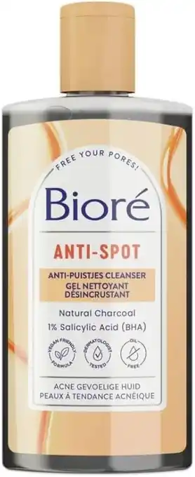 Nu in de aanbieding bij Amazon: Bioré anti-puistjes cleanser met houtskool - voor een normale tot vette huid - 200 milliliter✅ Actie geldig van 9-12 t/m 22-12.