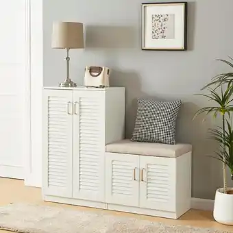 Nu in de aanbieding bij Amazon: [en.casa] Schoenenkast Løten met 9 legplanken 4 geventileerde deuren wit 97x120x36 cm✅ Actie geldig van 8-12 t/m 21-12.