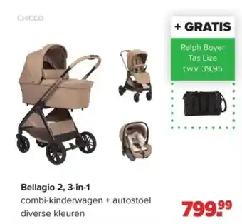 De Bellagio 2, 3-in-1 combi-kinderwagen van CHICCO is de perfecte keuze voor ouders die op zoek zijn naar een praktische en stijlvolle kinderwagen. Deze set wordt geleverd met een autostoel en als extra bonus ontvang je de trendy Tas Lize t.w.v. 39,95 helemaal gratis! De kinderwagen is verkrijgbaar in diverse kleuren en biedt comfort en veiligheid voor jouw kleintje. Met het handige 3-in-1 ontwerp kun je de kinderwagen eenvoudig aanpassen aan jouw behoeften. Of je nu een wandeling maakt in de stad of een uitstapje maakt naar het park, met de Bellagio 2 ben je altijd goed voorbereid. Bestel nu voor slechts 799,99 en geniet van de kwaliteit en luxe van Ralph Boyer.