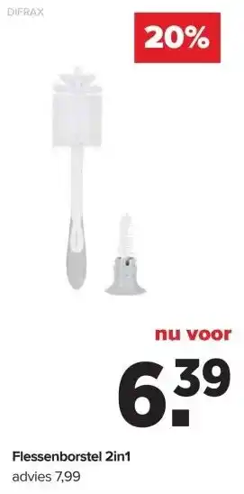 De prijs van de Flessenborstel 2in1 kan ook teruggevonden worden hierboven op de pagina, samen met de datum van wanneer de aanbieding beschikbaar is. Ook kun je de prijzen in de huidige Baby-Dump folder of op de Baby-Dump website controleren. De aanbiedingen verzekeren je van het kopen van de Baby-Dump producten voor de laagste prijs.